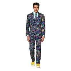 All eyes on you. Its eye-catching pattern and slim-fit design make this men’s suit from OppoSuits stand out in a crowd. Ready to steal the spotlight?