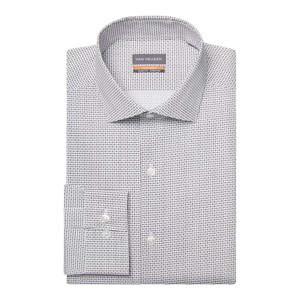 Instantly upgrade your look with this men’s slim-fit dress shirt from Van Heusen.